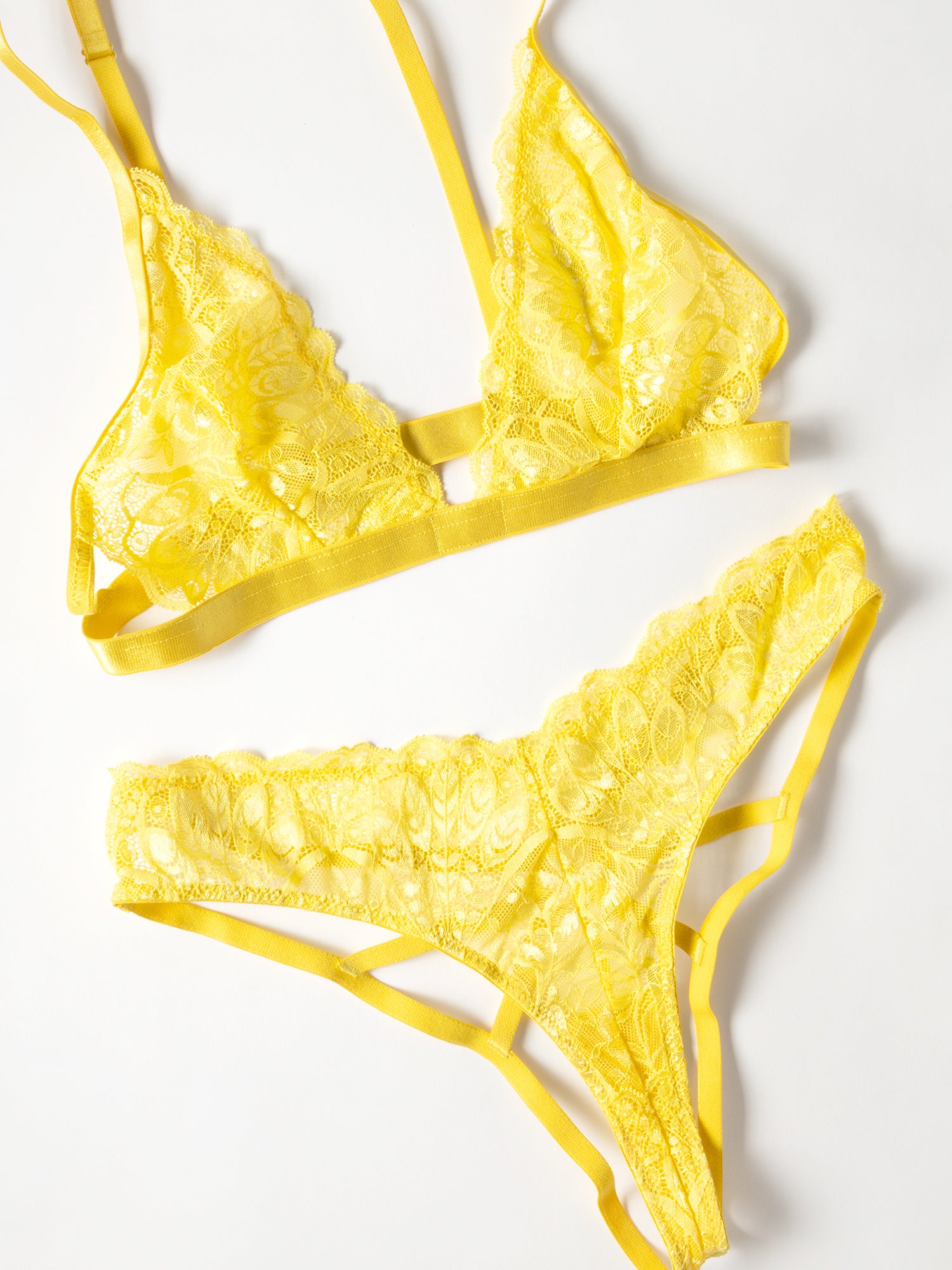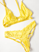 • Two-piece lace bra set with a caged back panty