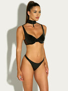 Take a walk on the wild side with Fetish Wear Me Now, Wear Me Later Bra Set! Use it to elevate your daily style or to add a daring twist later on. The adjustable underwire bra provides support and can be discreetly worn under any top. The included thong back panty and wide collar give off a bold, high fashion vibe. Live life unapologetically and strap in for a thrilling adventure with this set!