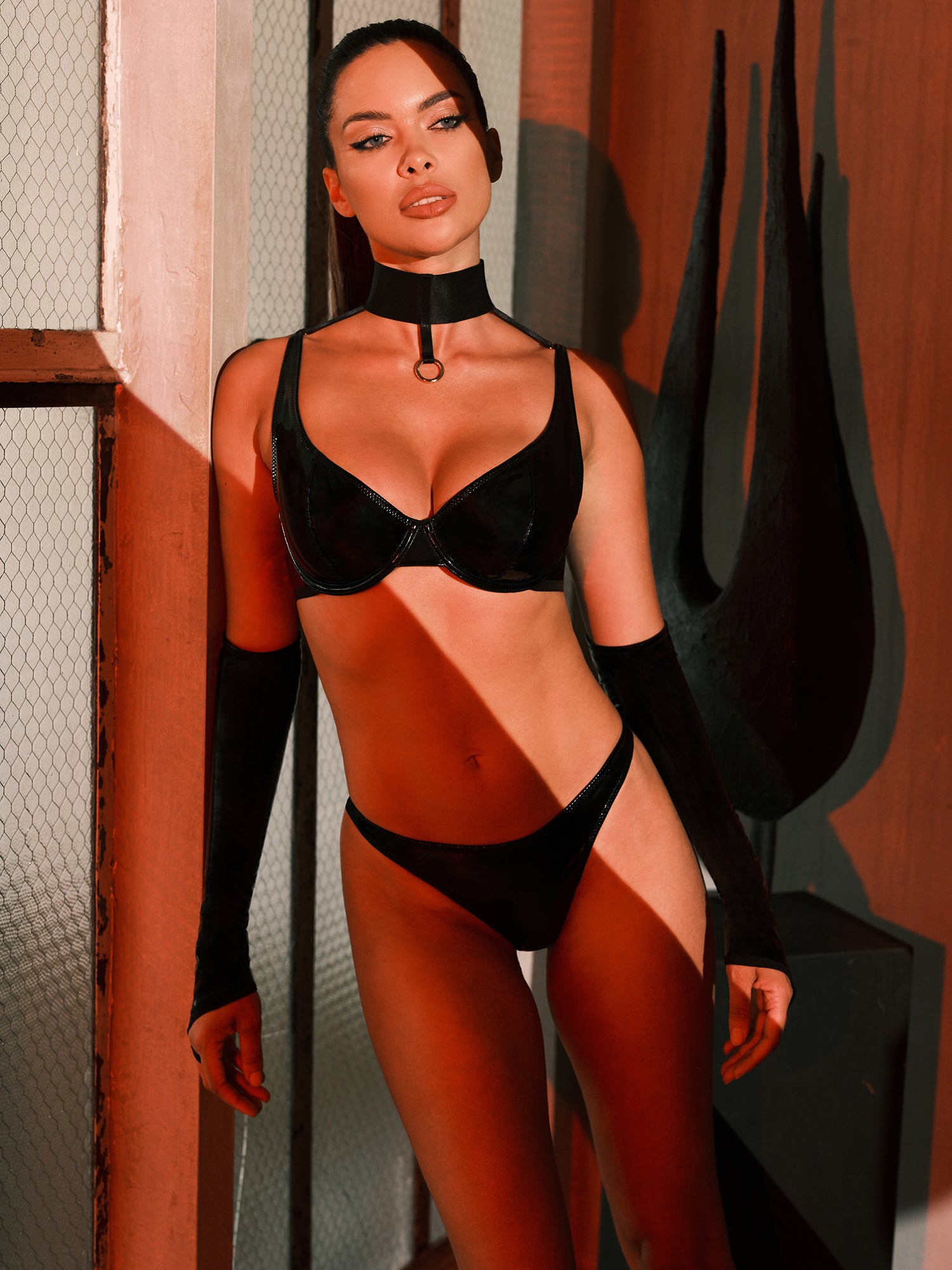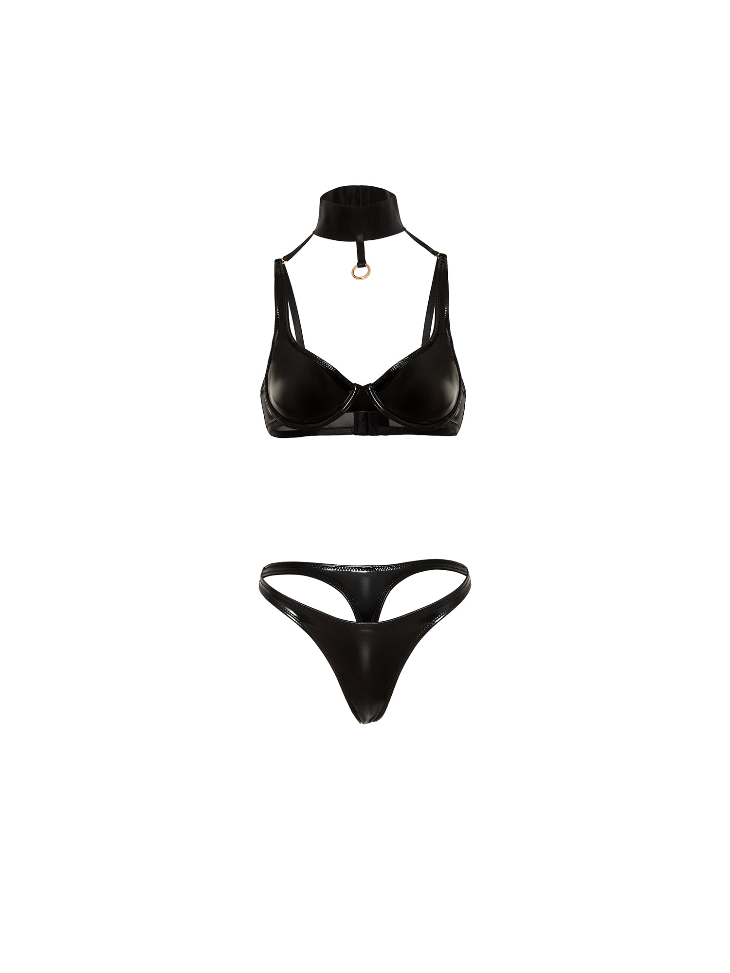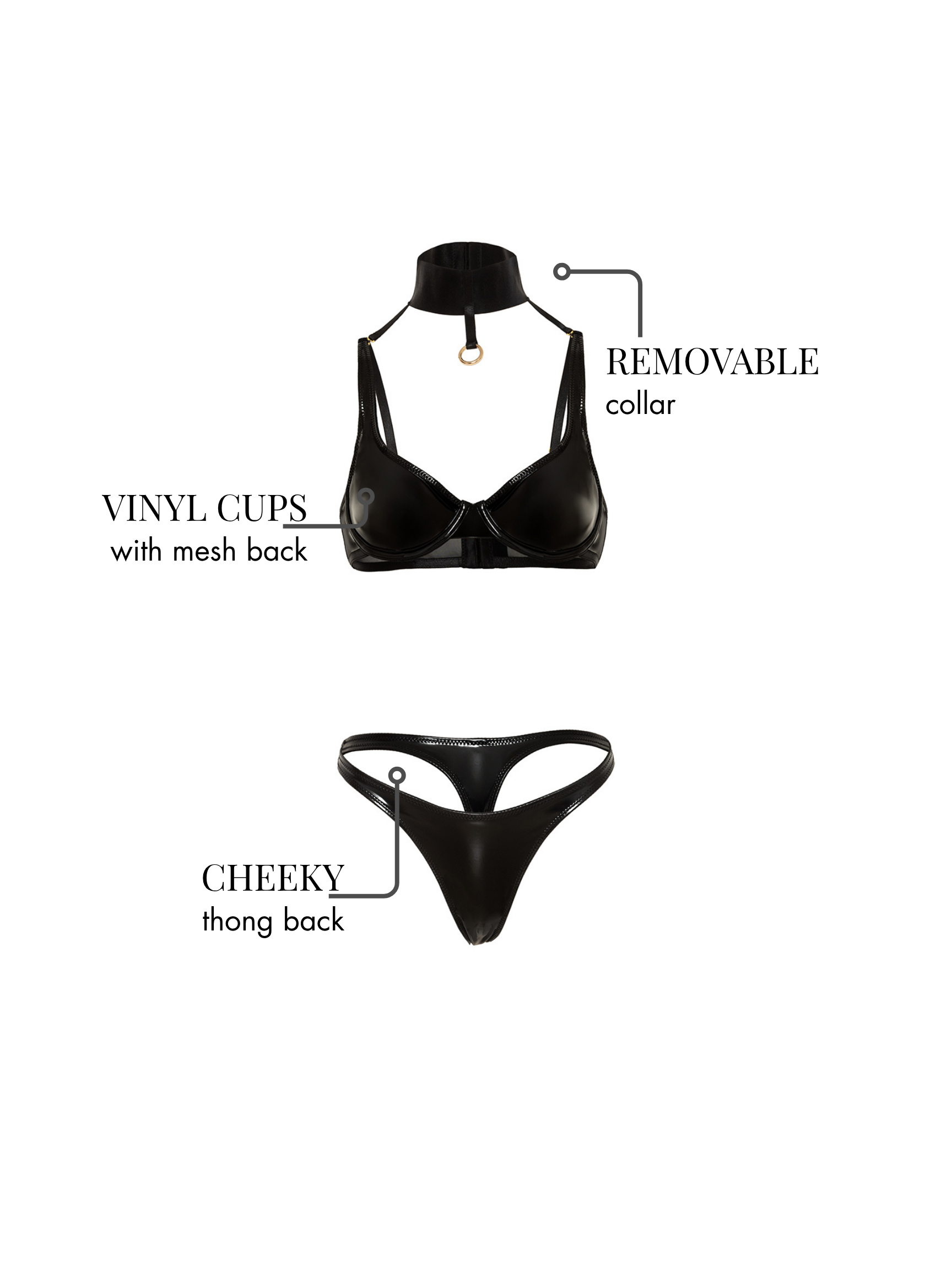 • UNLINED UNDERWIRE VINYL AND MESH 2PC SET WITH DETACHABLE COLLAR