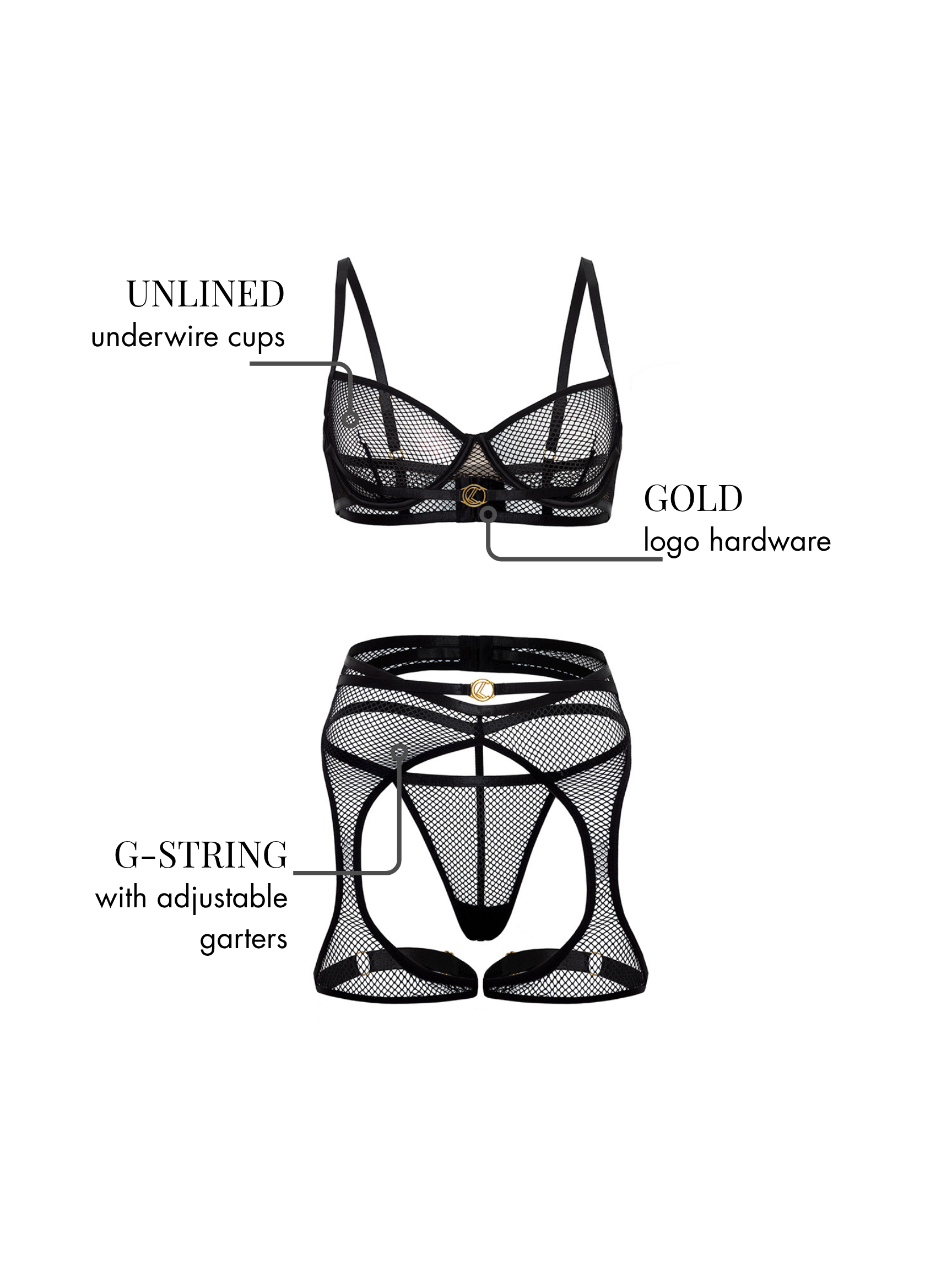 • UNLINED UNDERWIRE 3PC SET WITH FISHNET