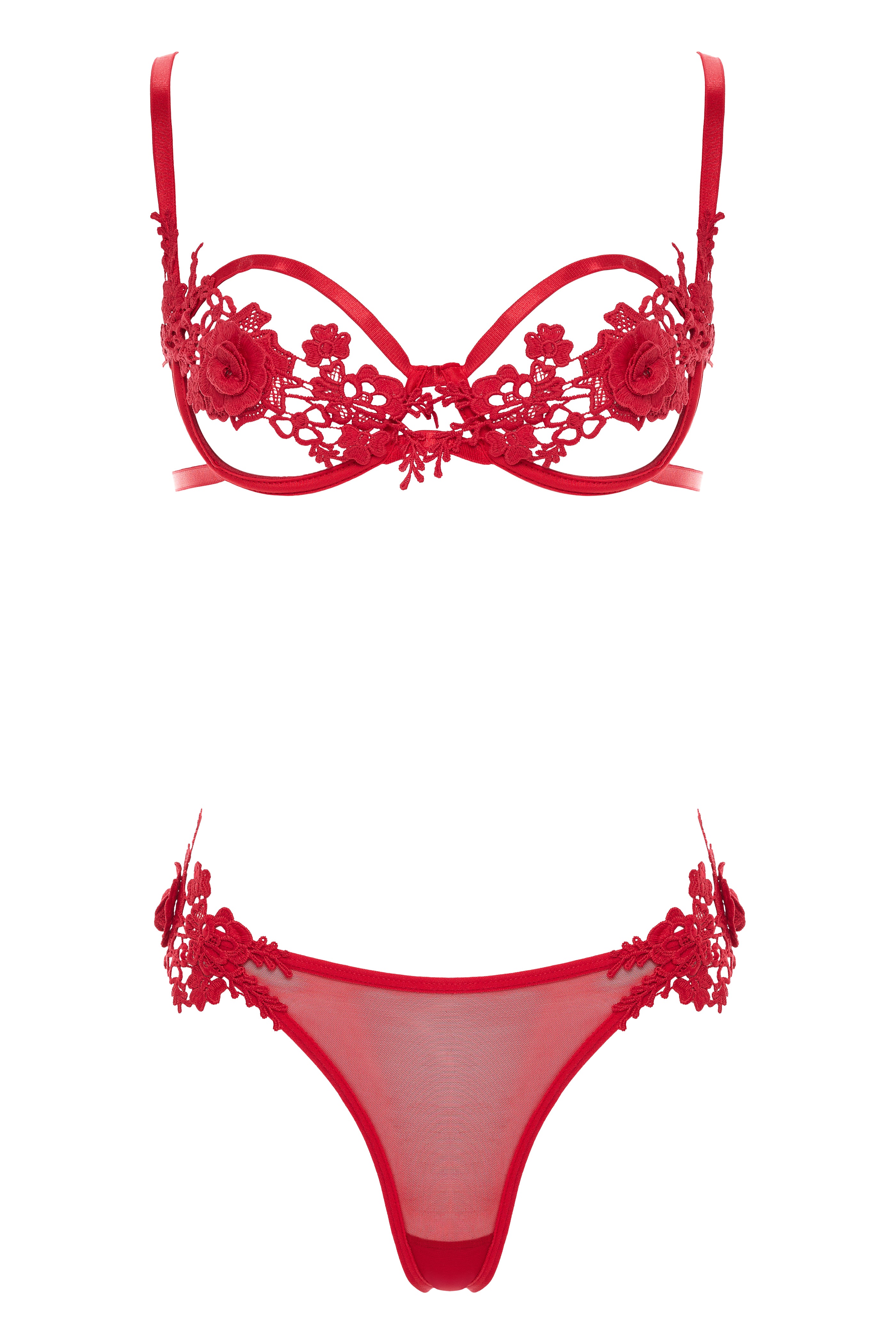 For those who prefer a hint of transparency, our embroidered mesh lingerie provides a tantalizing blend of temptation & sophistication. Browse assorted styles, like our jaw-dropping embroidered bra & panty sets or embroidered bodysuits, bustiers, teddies & robes, also in plus-sizing. You’ll fall head over heels for our flower-patterned three-piece sets featuring garter belts or waist cinchers to show off all your curves.