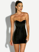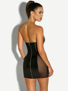 Experience a new level of daring with the upgraded Fetish Rider Strapless Tube Dress! No more fussing with straps - just zip up the functional back zipper and get ready for a wild ride. The mesh side paneling and boning provide support while adding an edgy touch. This dress is made for fearless risk-takers like you - take it for a spin and show off your bold style!