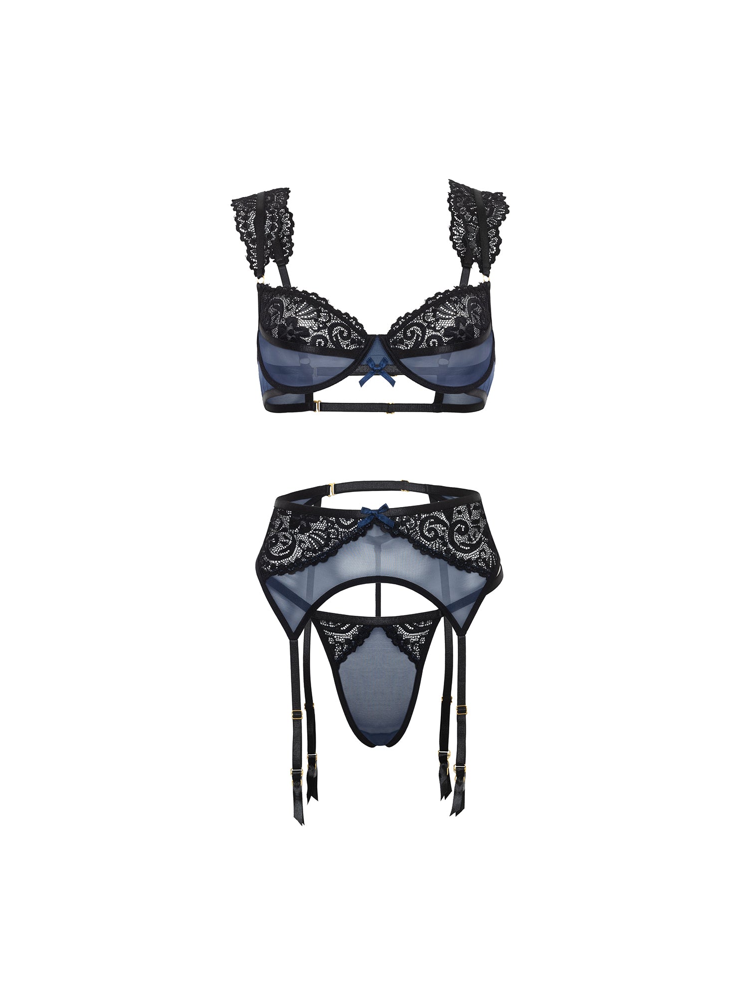 Unleash your inner allure with the Amanda Lace 3 Piece Bra Set. Crafted from sheer mesh and delicate lace, this unlined underwire bra offers natural lift with a flirty, barely-there feel. The matching panty and adjustable garter belt complete this seductive trio, designed to celebrate every curve with confidence and grace. Whether it’s a special occasion or a moment to feel fabulous every day, Amanda brings a touch of timeless elegance with a modern edge.