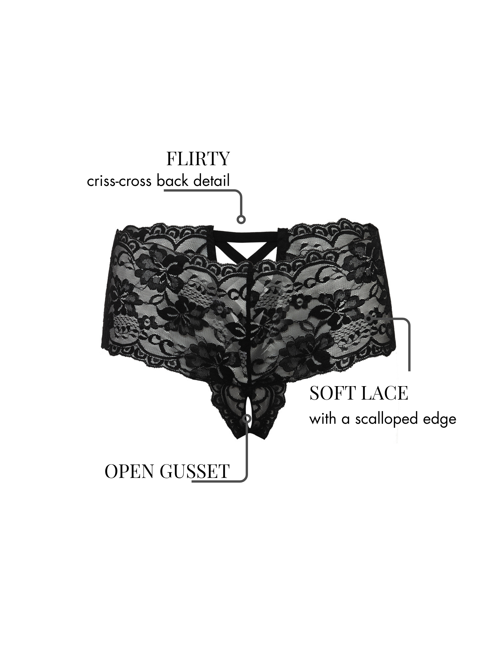 • Good Night Kiss Lace Crotchless Boyshort is also available in Plus Sizes