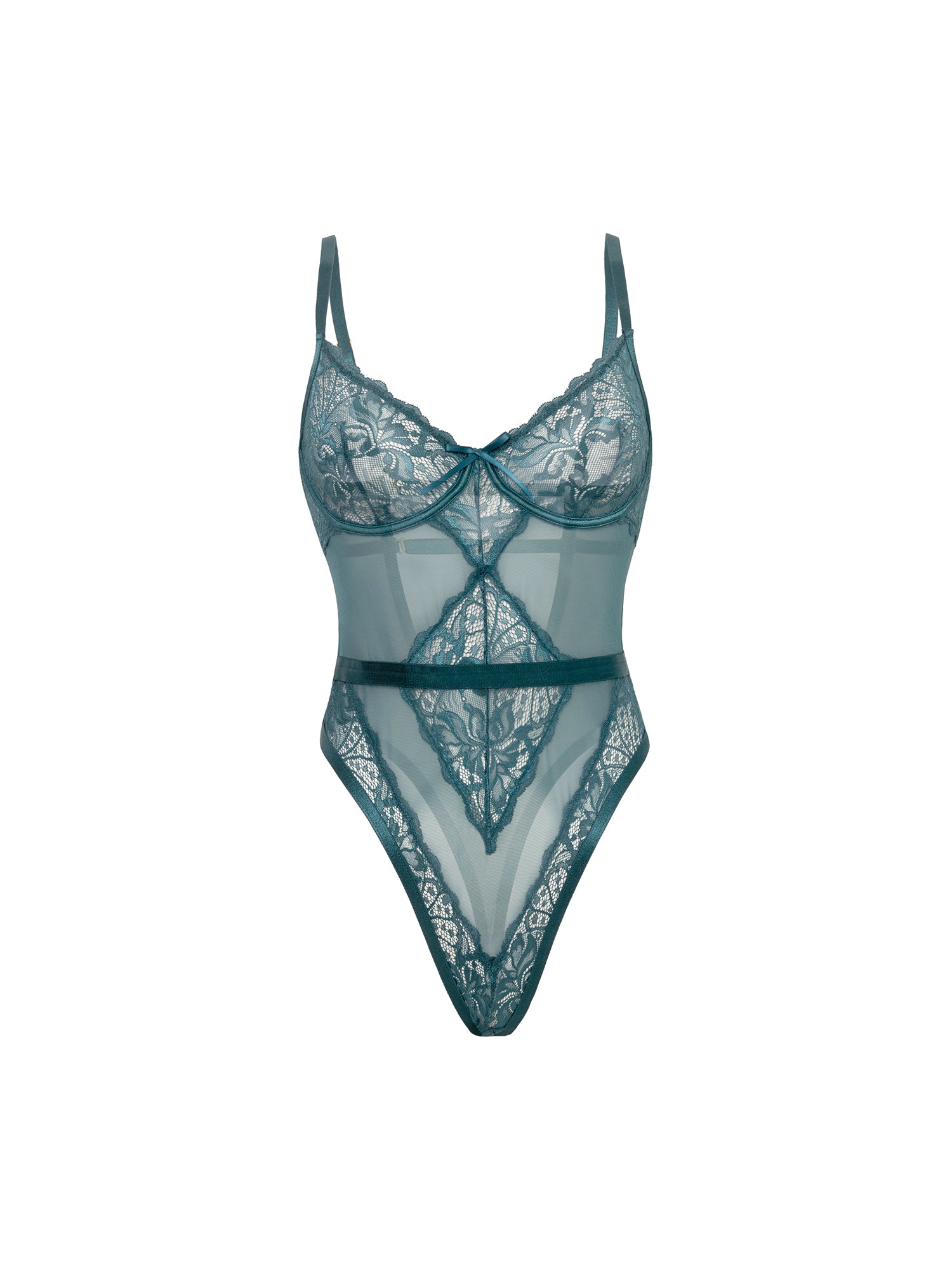 Add something flirty and feminine to your lingerie collection with the Curvy Paisley Sheer Lace Teddy. This thong teddy lingerie blends delicate lace with airy mesh for a playful yet sophisticated look. Unlined underwire cups provide lift and support, while the bow detail adds a sweet, flirty touch. It is perfect for moments when you want to feel effortlessly sexy.
