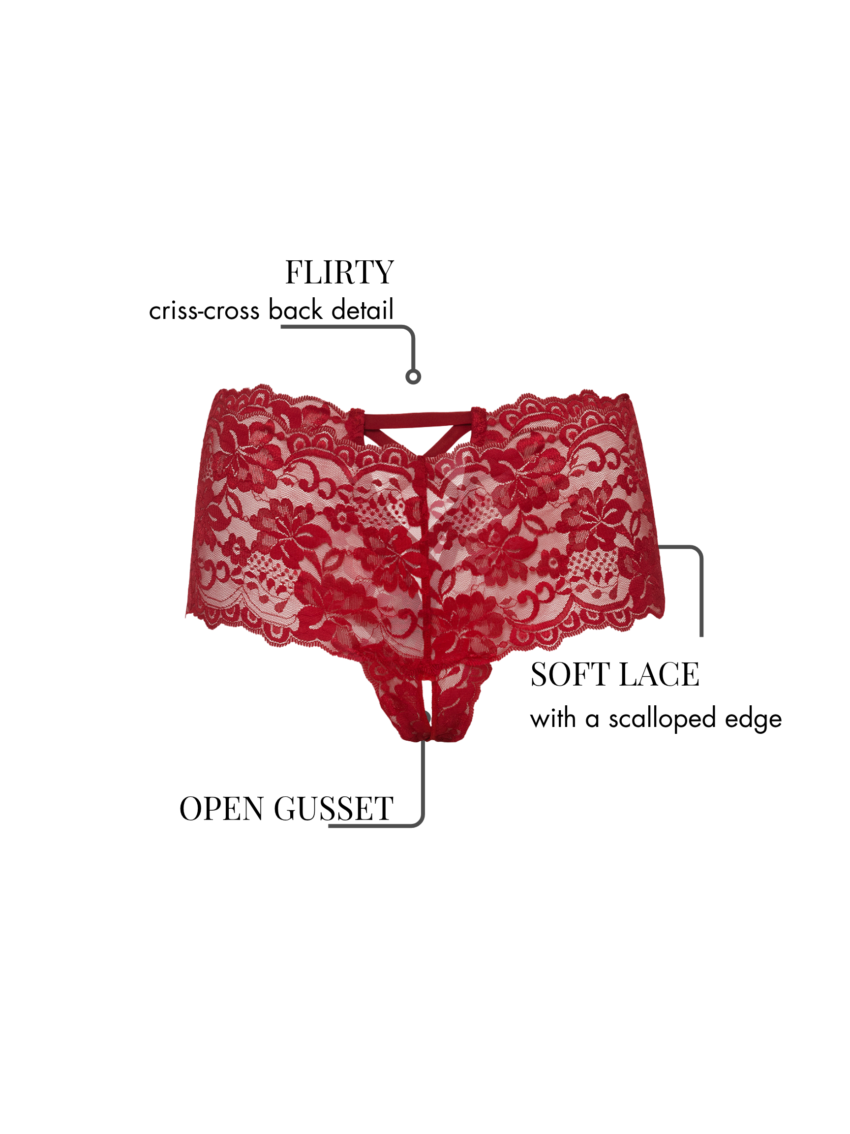 Curvy Good Night Kiss Lace Crotchless Boyshort