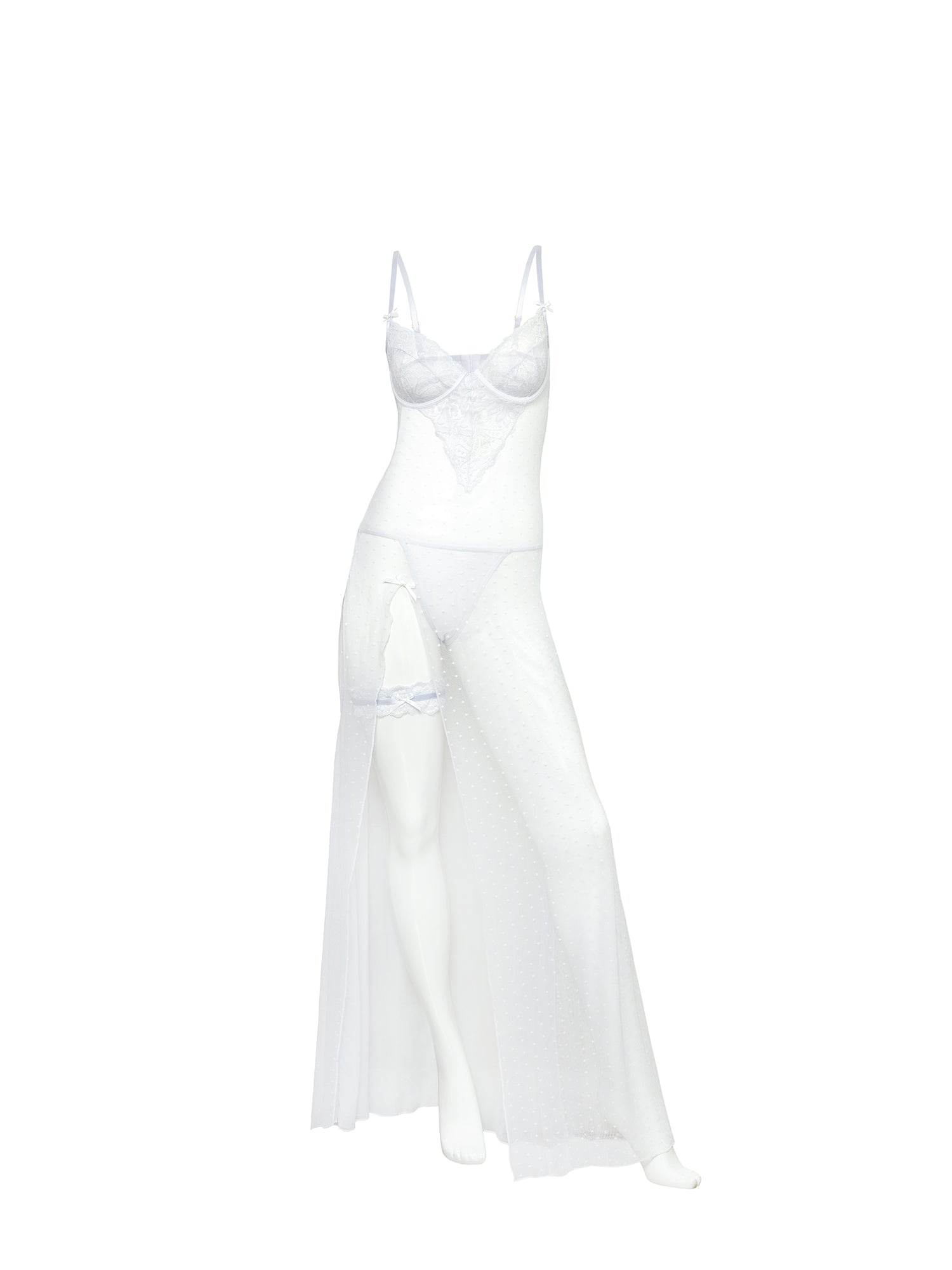 • DOT MESH GOWN WITH LACE INSERTS
