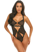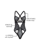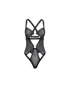 Elevate your allure with the Esme Sheer Cut Out Teddy, crafted from stretch mesh fabric for a flattering and personalized fit. Featuring alluring cut outs and intricate key ring accents, this luxurious teddy highlights your most stunning features.