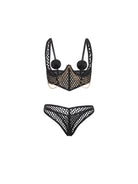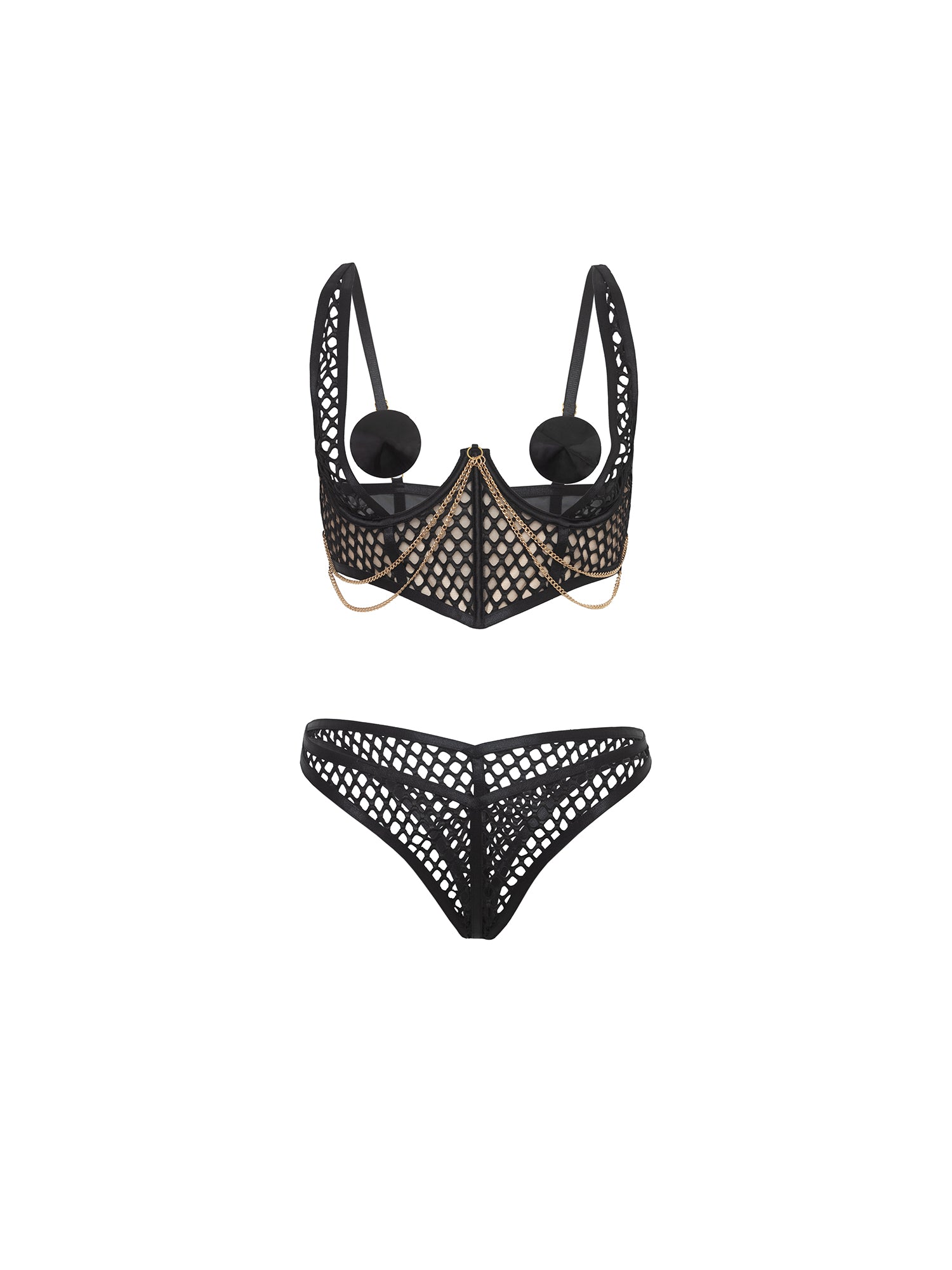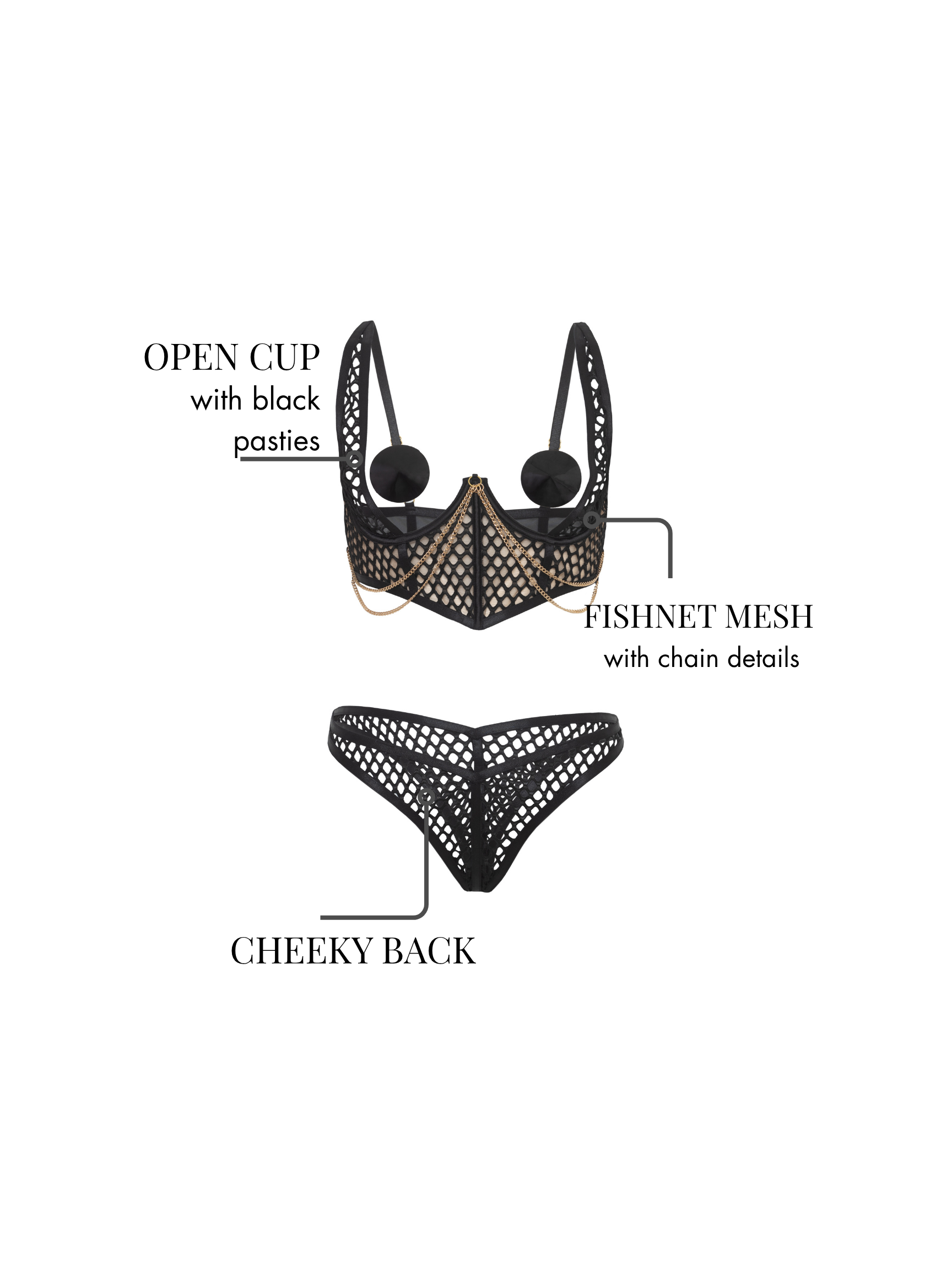 • UNDERWIRE OPEN CUP 3PC SET WITH CHAIN DETAIL SOLD WITH BLACK PASTIES