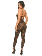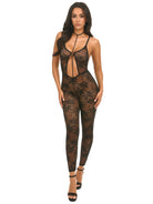 Unleash your wild side with the Presley Choker Lace Bodystocking! Made of soft stretch lace, this daring catsuit features an open center and attached harness collar. Wear it with a skirt, shorts, or rock it on its own for an edgy and alluring look. Take a risk and make a bold statement with Presley!