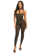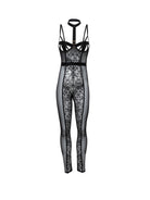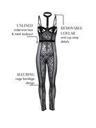 Take a daring risk in Sia, a captivating catsuit with lace and mesh panels. The top features an underwire bra, with an alluring cage bandage design and attached choker. Stand out this holiday season with this electrifying bodystocking!