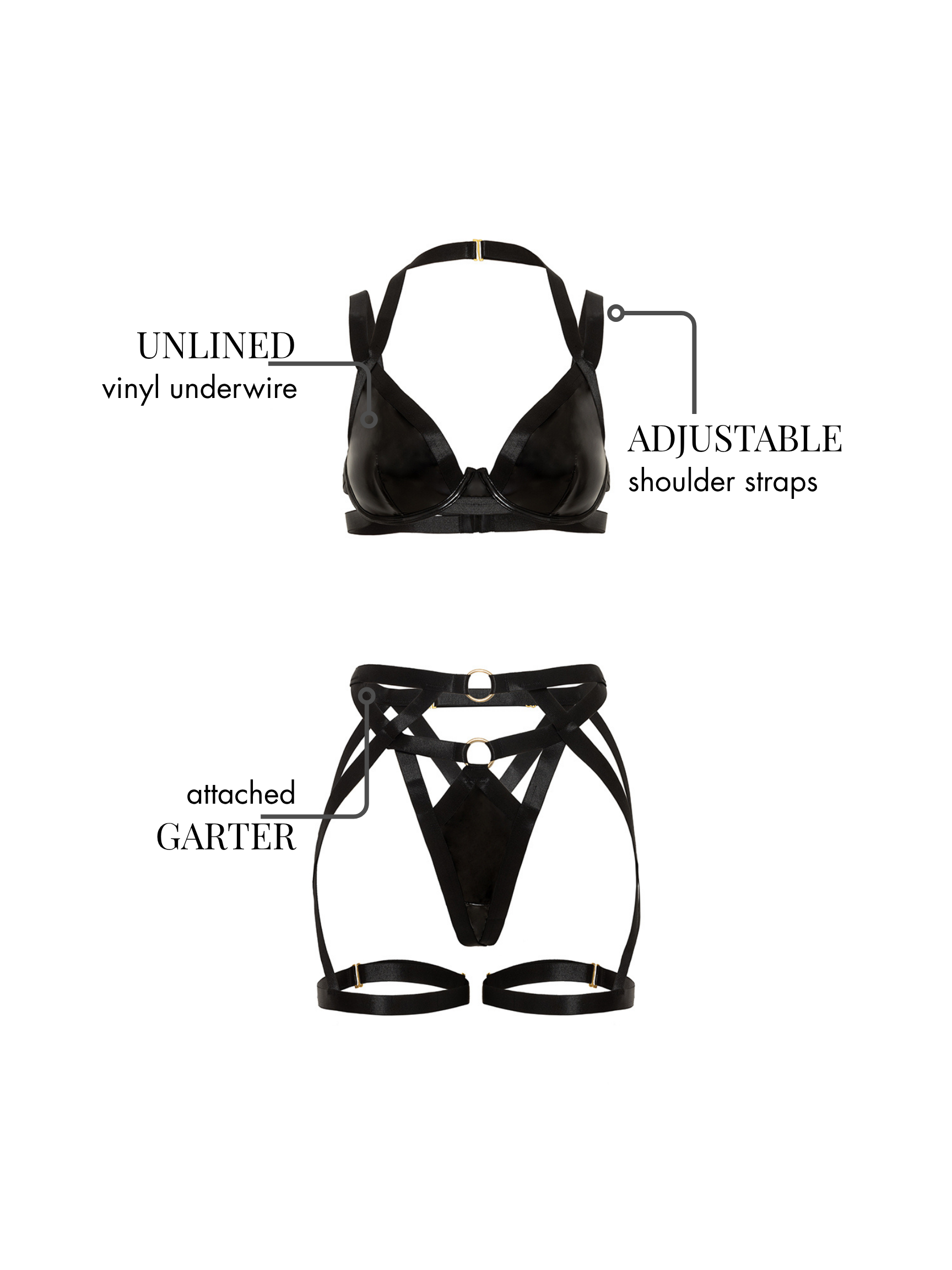• Unlined Underwire Vinyl Set with wide elastic strap details