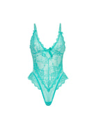• Sheer lace and mesh teddy with satin bow details