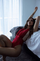 Introducing the Aria Sheer Plunge Halter Teddy: a luxurious lingerie piece featuring alluring sheer mesh and delicate lace. A plunging halter neckline highlights the soft cups, while the functional tie at the back of the neck ensures a perfect fit. The lace body and "cheeky" back complete the look for a truly tantalizing ensemble. Experience absolute comfort and elegance with Aria Sheer Plunge Halter Teddy.